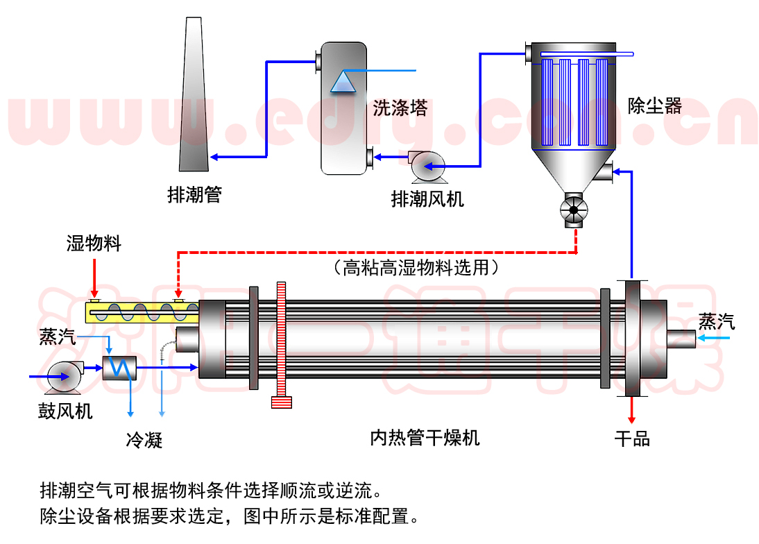 3. 大型蒸汽管式干燥機技術(shù),使物料與熱管處于完全混合狀態(tài),強化了傳熱傳質(zhì),提高了干燥強度。